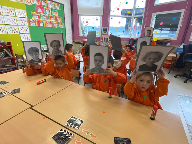 E colocamos as nosas fotos na cortiza enriba dos nosos percheiros. Agora falta por escribir o nome de Chaplin e poñelo pero...o próximo día!!